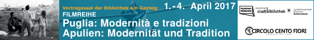 Die Filmreihe PUGLIA: MODERNITÀ E TRADIZIONE / APULIEN: MODERNITÄT UND TRADITION zeigt Filme von aus Apulien stammenden Regisseuren, die ihre Filme vor Ort gedreht haben. In ihren Spiel- und Dokumentarfilmen verbinden sich Vergangenheit und Gegenwart – die erzählten Geschichten verzaubern und ernüchtern in gleichem Maße und entführen in die fast unbekannte Welt Apuliens.